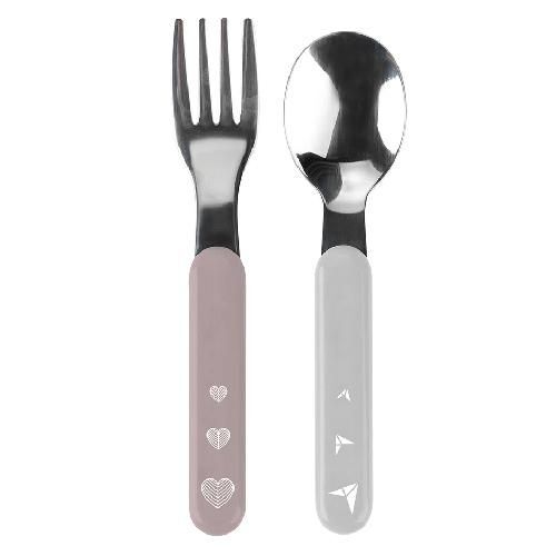 BABYONO Sztućce dla dzieci ze stali szlachetnej różowo-szare 1065/02