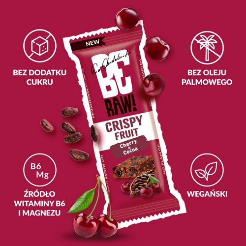 BeRAW! Crispy Fruit Wiśnia i Kakao Baton owocowy, 40g