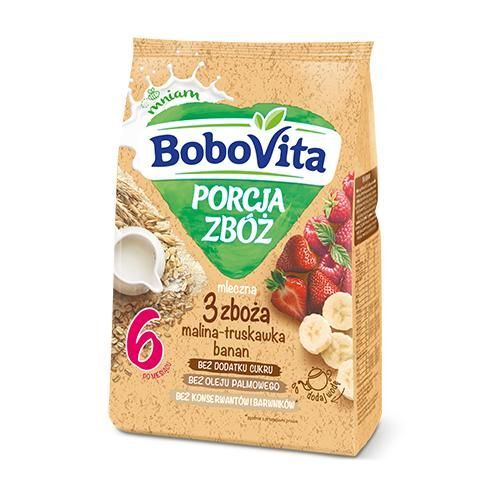 BoboVita Porcja zbóż mleczna kaszka 3 zboża malina truskawka banan, 210g