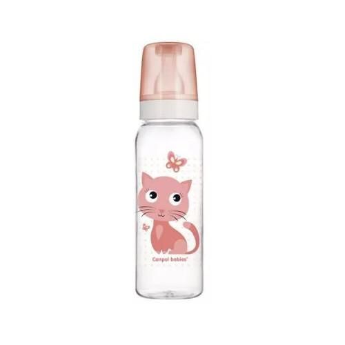 CANPOL BABIES Butelka wąska Cute Animals różowy kot 12m+ 250ml 11/841