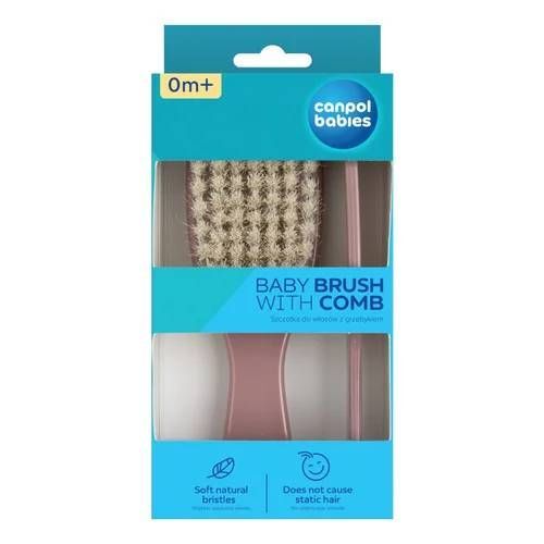 Canpol Babies Szczotka i grzebień z naturalnym włosiem Gold różowa 7/406