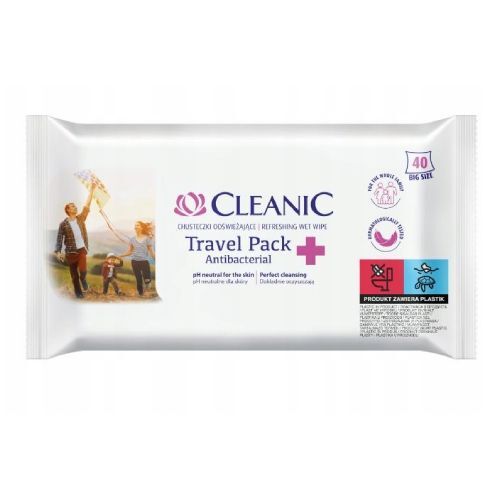 CLEANIC Antibacterial Travel Pack Chusteczki odświeżające, 40szt.