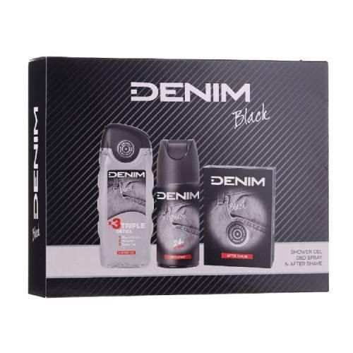 DENIM Black Zestaw dla mężczyzn (Woda po goleniu, 100ml + Żel pod prysznic, 250ml + Dezodorant spray, 150ml)