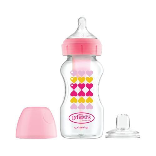 Dr Brown's Zestaw "Od Butelki Do Kubka" Butelka Options+ 270ml różowa + smoczek silikonowy + ustnik ,,niekapek"