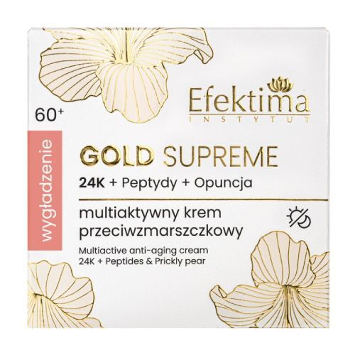 EFEKTIMA Gold Supreme Multiaktywny krem przeciwzmarszczkowy 24K + Peptydy + Opuncja Wygładzenie 60+, 50 ml