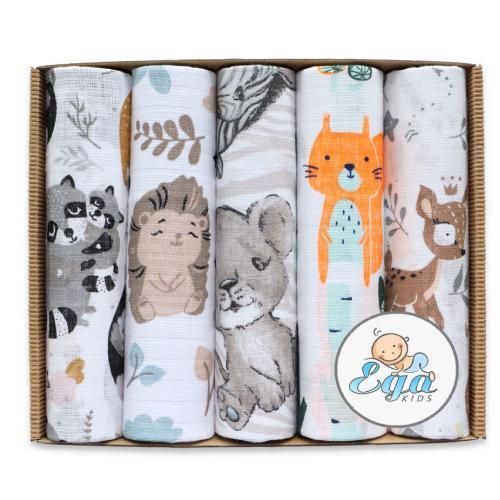 EGA KIDS Zestaw pieluszek tetrowych 70x80 Zwierzęta, 5szt.