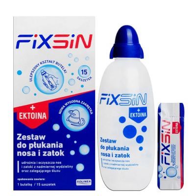 FIXSIN + EKTOINA zestaw podstawowy do płukania nosa i zatok (butelka + 15 saszetek)