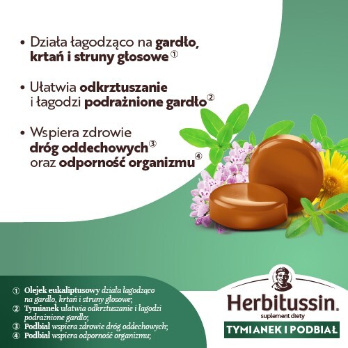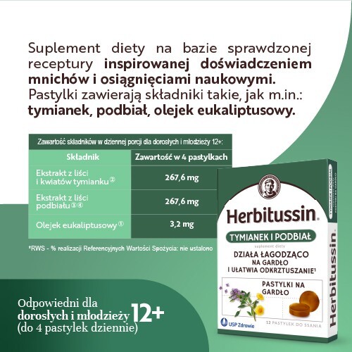 Herbitussin Tymianek i Podbiał, 12 pastylek do ssania