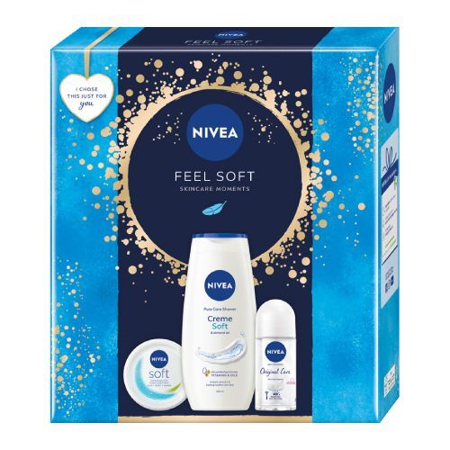 NIVEA Feel Soft Zestaw antyperspirant roll-on, 50ml + krem intensywnie nawilżający, 100ml + żel pod prysznic, 250ml