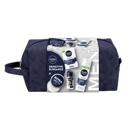 NIVEA MEN Sensitive Zestaw Balsam po goleniu, 100ml + Łagodząca pianka do golenia, 200ml + Krem do twarzy i ciała dla mężczyzn, 75 ml + Antyperspirant Roll-On, 50 ml