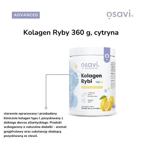 OSAVI Kolagen rybi z dzikiego dorsza w proszku o smaku cytrynowym, 360 g