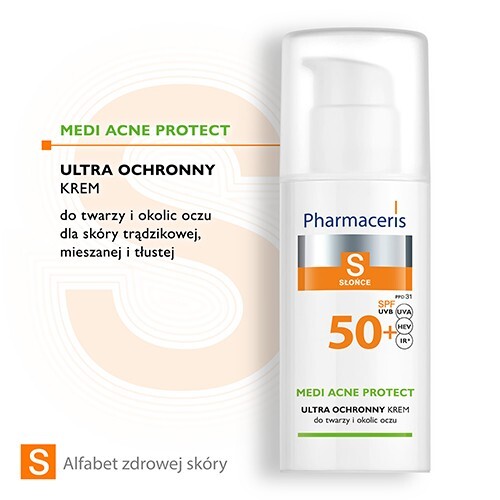 PHARMACERIS S SŁOŃCE SPF50+ MEDI ACNE PROTECT krem do skóry trądzikowej, tłustej i mieszanej 50 ml