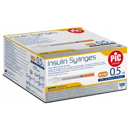 PIC Insulin Syringes Jednorazowa strzykawka insulinowa 0,5 ml G30 0,30 mm x 8 mm, 100 szt.