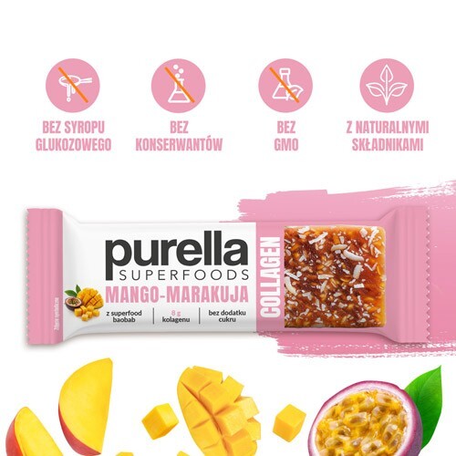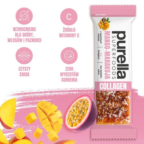 PURELLA Collagen Bar Baton kolagenowy Mango-Marakuja bez dodatku cukru, 40g