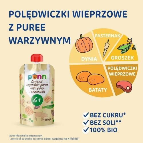 SALVEST PÕNN BIO Polędwiczki wieprzowe z puree warzywnym, 110g